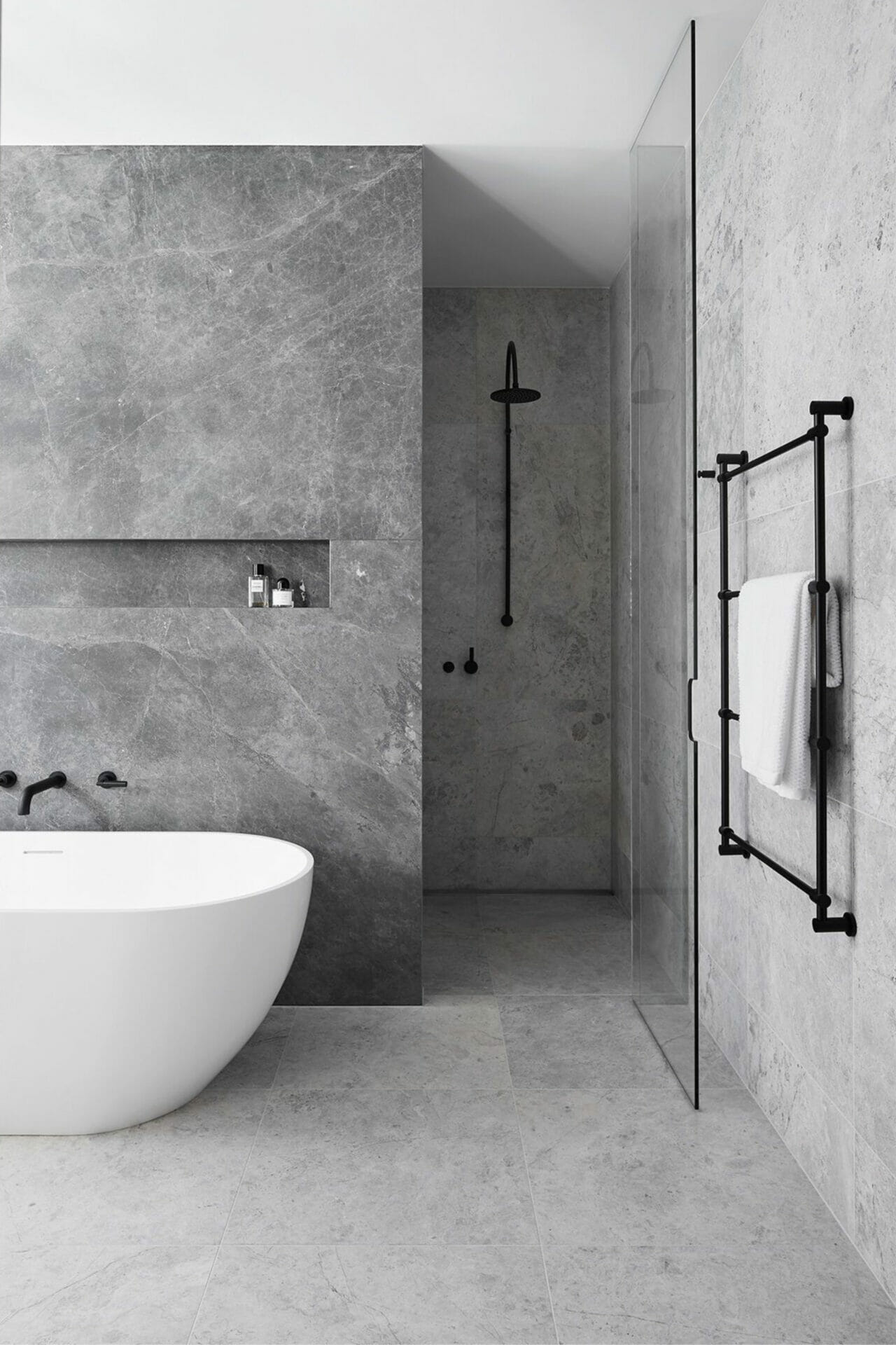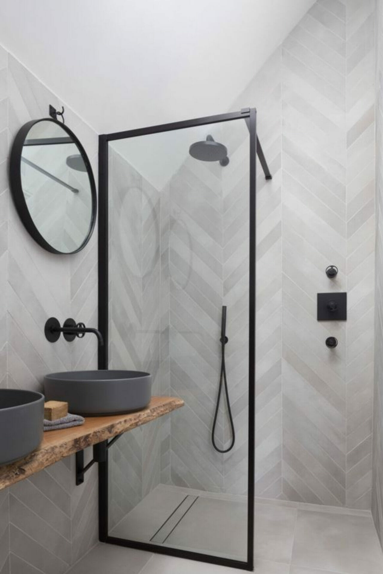 Mπάνια με γκρι πλακάκι που ξεχωρίσαμε
