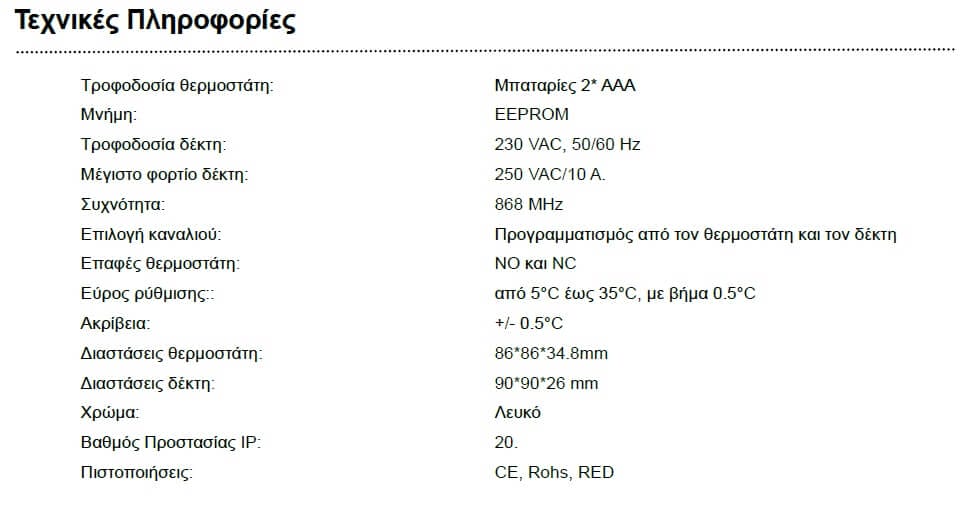 Με αυτόν τον τρόπο μπορείτε να εγκαταστήσετε τον θερμοστάτη χώρου οπουδήποτε μέσα στο σπίτι χωρίς καμία απολύτως καλωδίωση. Ο θερμοστάτης διαθέτει μία μεγάλη φωτιζόμενη οθόνη LCD. Με αυτόν τον τρόπο εξασφαλίζεται η καλαισθησία και η λειτουργικότητα του προϊόντος. Διαθέτει επίσης και δυνατότητα κλειδώματος έτσι ώστε να αποφεύγεται η επέμβαση στην ρύθμιση της θερμοκρασίας από άλλους χρήστες.
