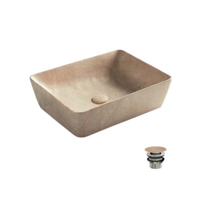 Στρογγυλός νιπτήρας μπάνιου Bucket Riverstone της εταιρείας Fossil, κατασκευασμένος από πέτρα. Μπορεί άνετα να διακοσμήσει κάθε μπάνιο είτε κλασικό, είτε μοντέρνο. Ο καθαρισμός του πρέπει να γίνεται αποκλειστικά με νερό ή με πολύ ήπια καθαριστικά. Επειδή το υλικό είναι πορώδες, χρειάζεται ειδική επίστρωση τουλάχιστον κάθε 6 μήνες, για να διατηρήσει την ομορφιά του αλλά και την υγιεινή του.