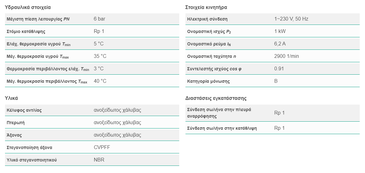 Έτοιμη για σύνδεση εγκατάσταση αντλιών, προσυναρμολογημένη και καλωδιωμένη με 2 m καλώδιο και φις σύνδεσης. Ιδανική για τη χρήση στον κήπο και σε χόμπι. Για τριφασική σύνδεση με κιβώτιο ακροδεκτών