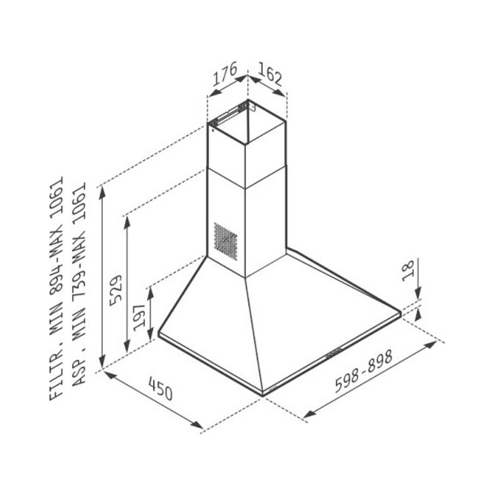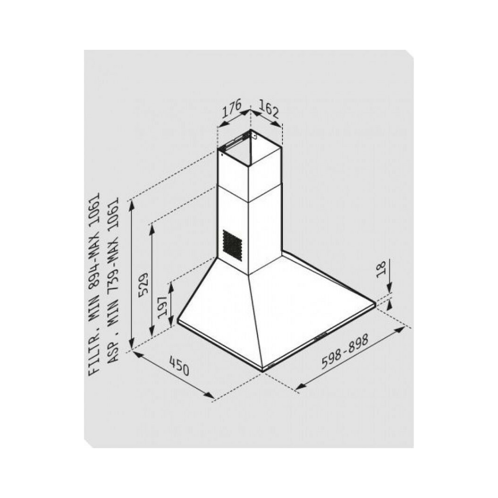 ΑΠΟΡΡΟΦΗΤΗΡΑΣ PYRAMIS ΜΕ ΚΑΜΙΝΑΔΑ ΤΕΤΡΑΓΩΝΗ LUX 60CM 065030102