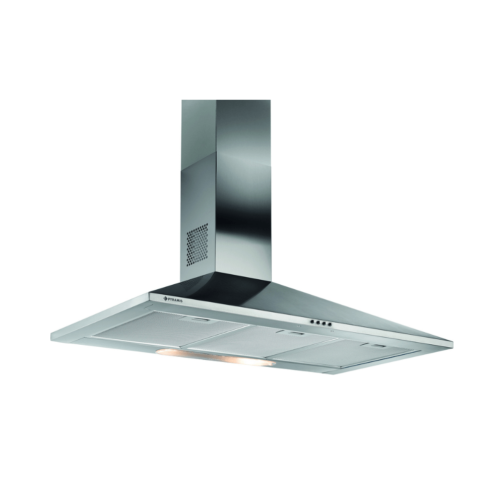 Ο απορροφητήρας της εταιρείας Pyramis τοποθετείται στον τοίχο. Είναι σχεδιασμένος με ένα διακοσμητικό που καλύπτει τη σωλήνα εξαγωγής αέρα και μοιάζει με καμινάδα.