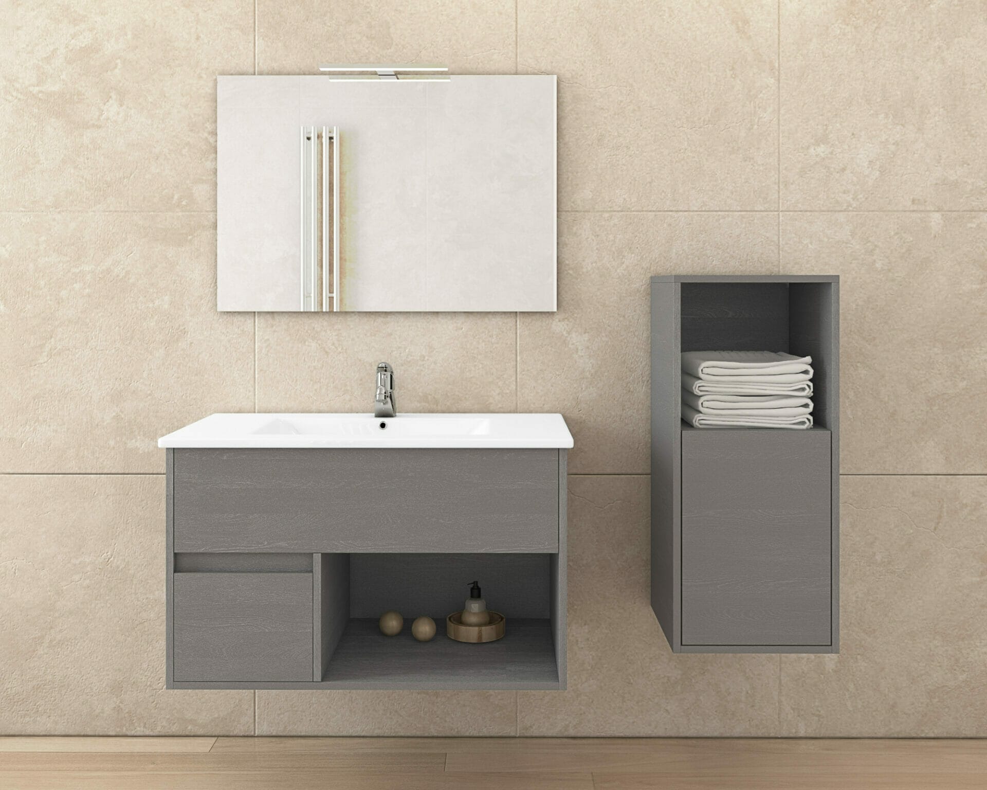 ΕΠΙΠΛΟ ΜΠΑΝΙΟΥ DROP SORRENTO 85 CEMENT ΜΕ ΒΑΣΗ, ΝΙΠΤΗΡΑ, ΚΑΘΡΕΦΤΗ ΚΑΙ ΣΤΗΛΗ 5PSO085CW | 5KPN080MR | 6BAT085PC | 5SSOL35CW