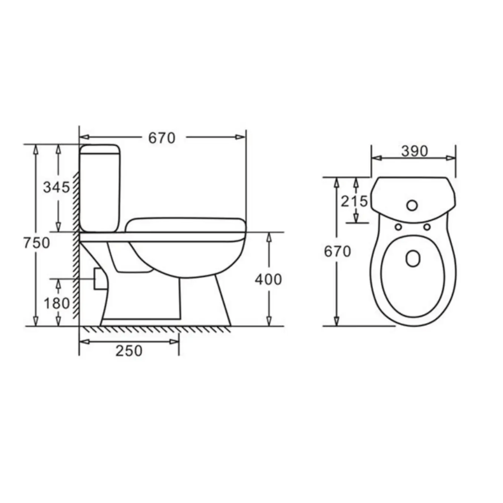 Σετ λεκάνης χαμηλής πίεσης με πίσω σιφόνι. Τοποθετείται στο δάπεδο και είναι ο πιο συνηθισμένος τύπος λεκάνης.